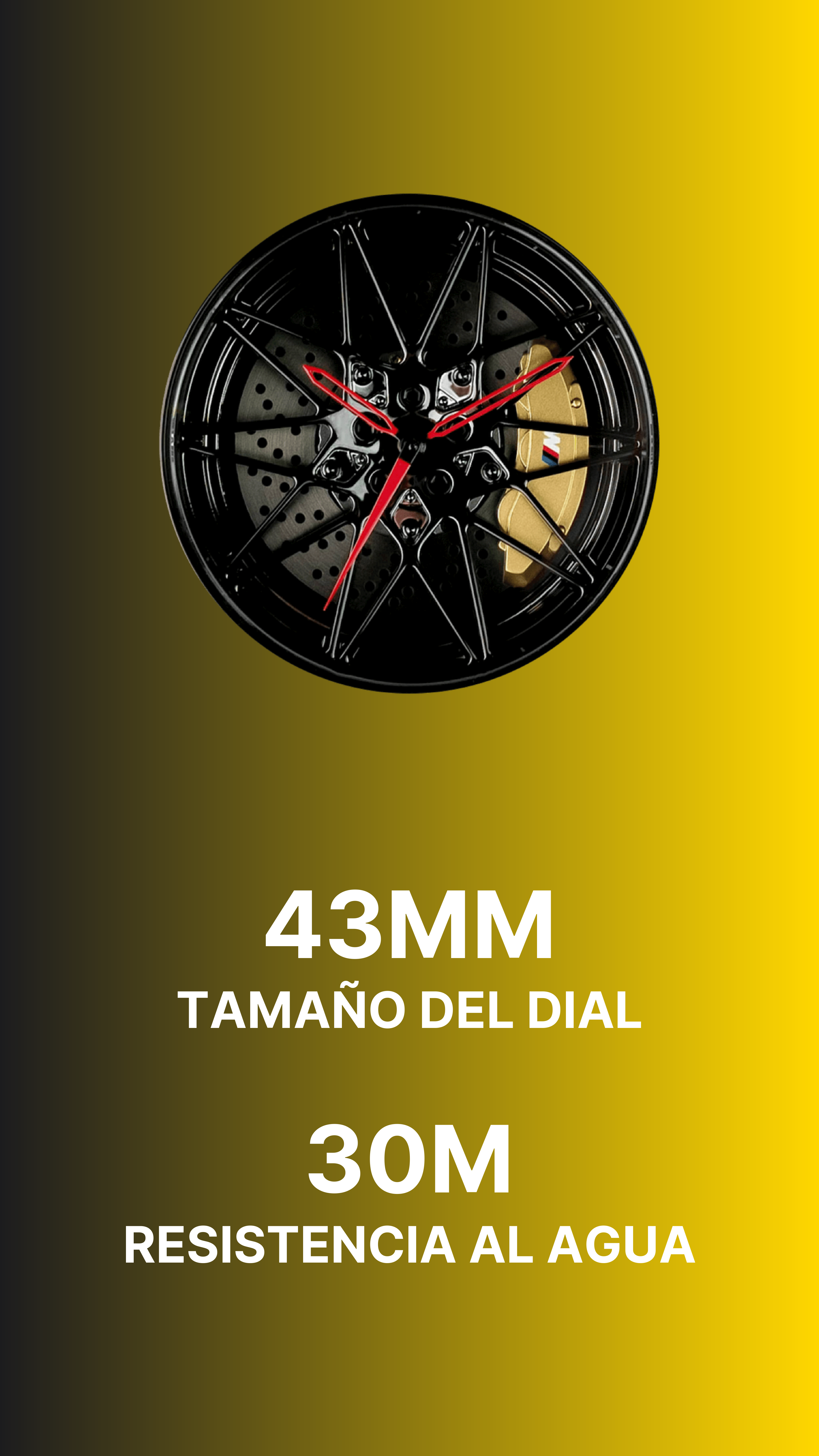 Una estética que captura la potencia bruta del automovilismo. Con un cristal de zafiro indestructible, detalles alucinantes como pinzas de freno, llanta 3D y discos ventilados, es más que un accesorio; es una declaración de pasión.