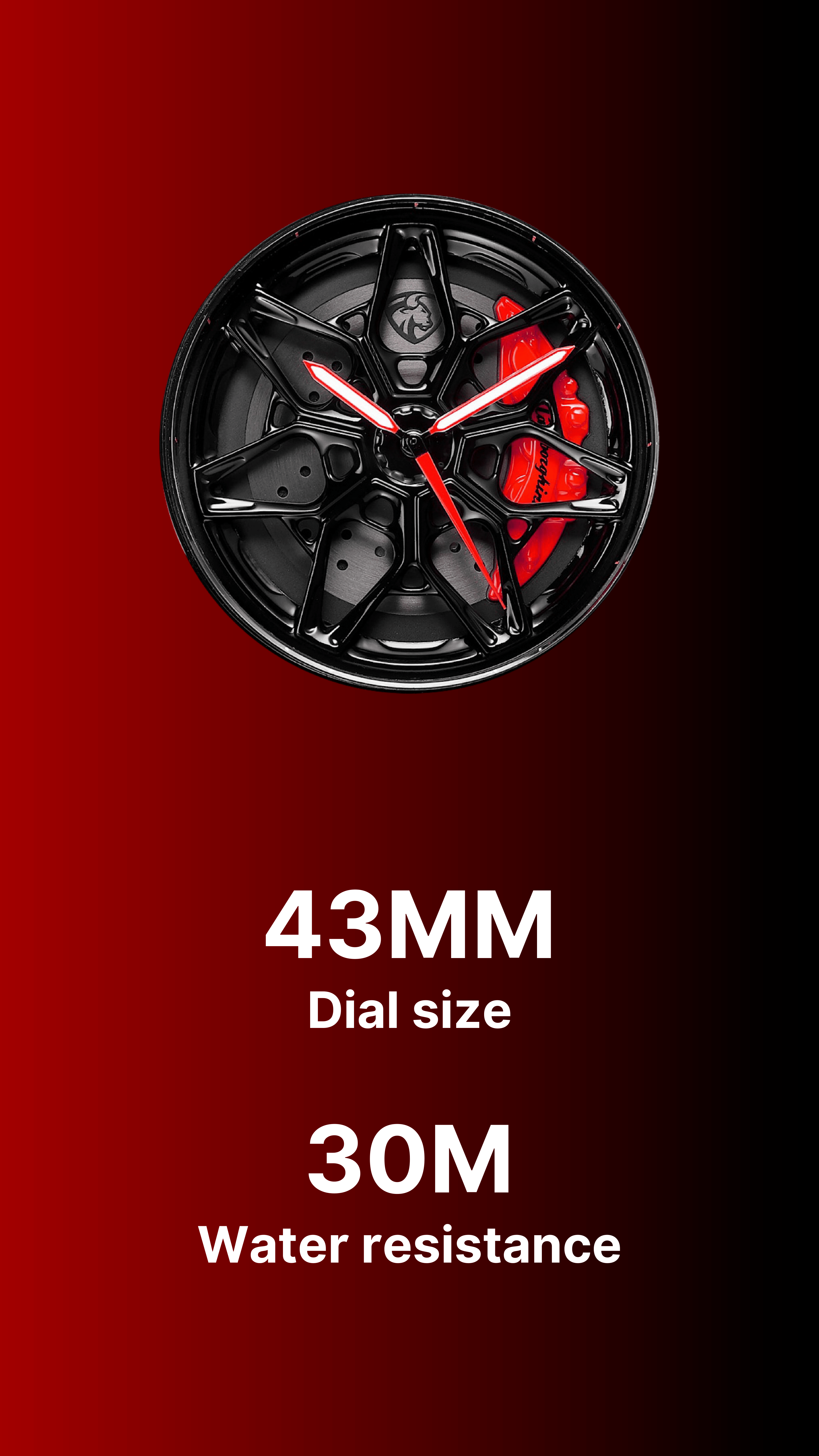Wenn Sie Ihr Handgelenk bewegen, dreht sich ein Reifen im Inneren der Uhr und imitiert so die Bewegung eines Autos.