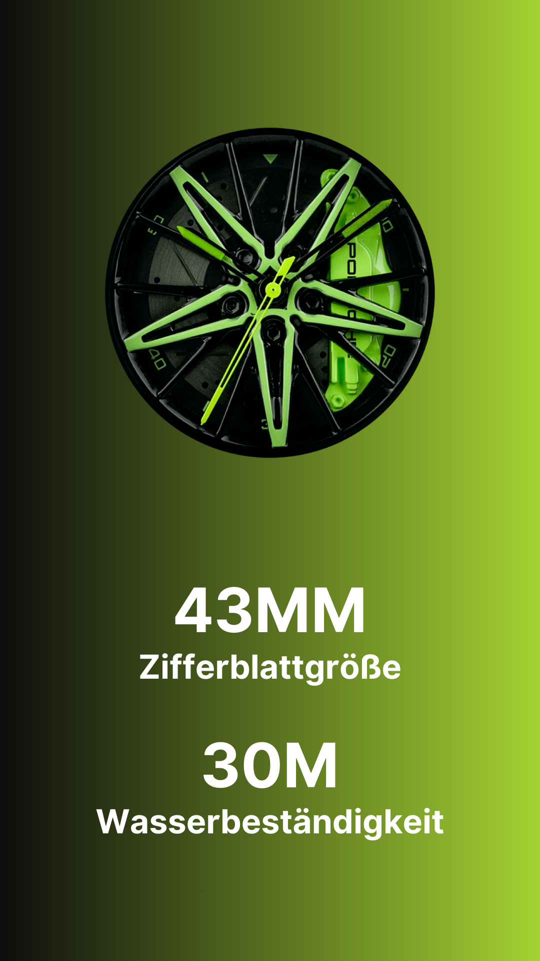 Wenn Sie Ihr Handgelenk bewegen, dreht sich ein Reifen im Inneren der Uhr und imitiert so die Bewegung eines Autos.