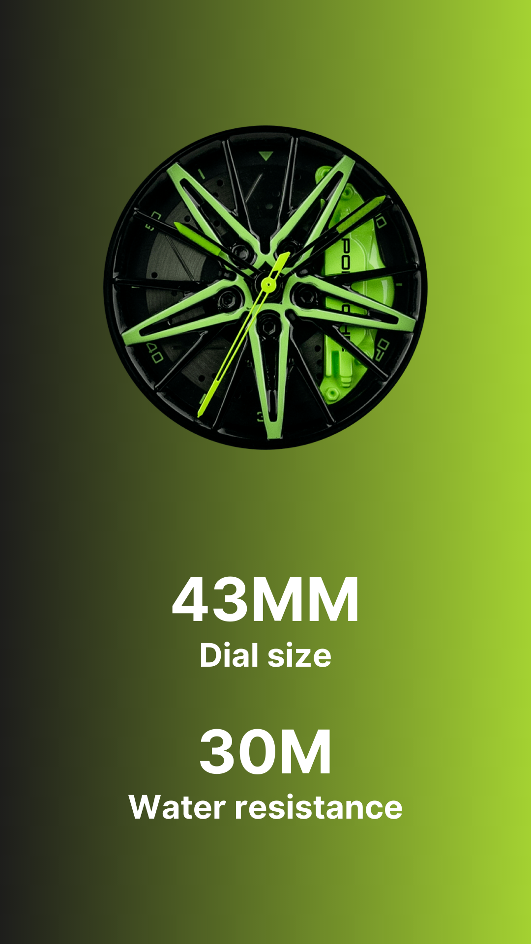 When you move your wrist, a wheel inside the watch spins, mimicking the movement of a car.
